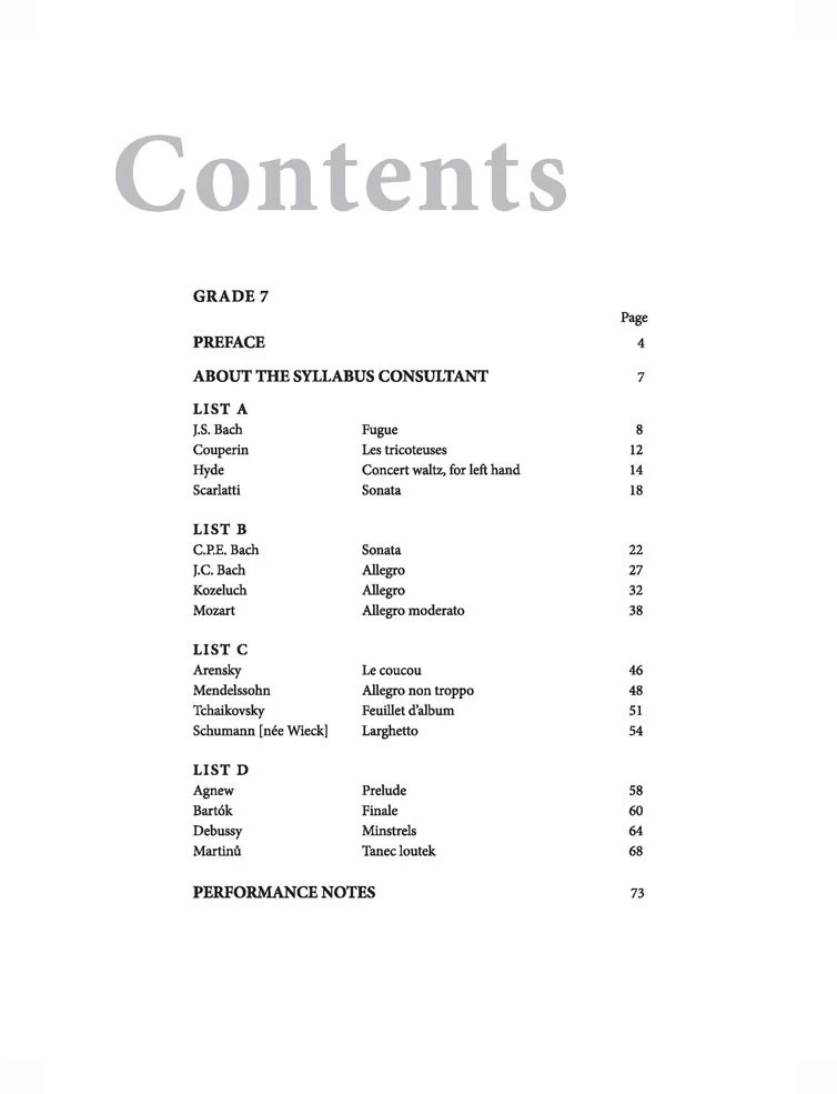 Contents: Allegro (Bach) ♫ Allegro (Kozeluch) ♫ Allegro Moderato (Mozart) ♫ Allegro Non Troppo (Mendelssohn) ♫ Concert Waltz for Left Hands (Hyde) ♫ Feuillet D'album (Tchaikovsky) ♫ Finale (Bartok) ♫ Fugue (Bach) ♫ Larghetto (Schumann) ♫ Le Coucou (Arensky) ♫ Les Tricoteuses (Couperin) ♫ Minstrels (Debussy) ♫ Prelude (Agnew) ♫ Sonata (CPE Bach) ♫ Sonata (Scarlatti) ♫ Tanec Loutek (Martinu)