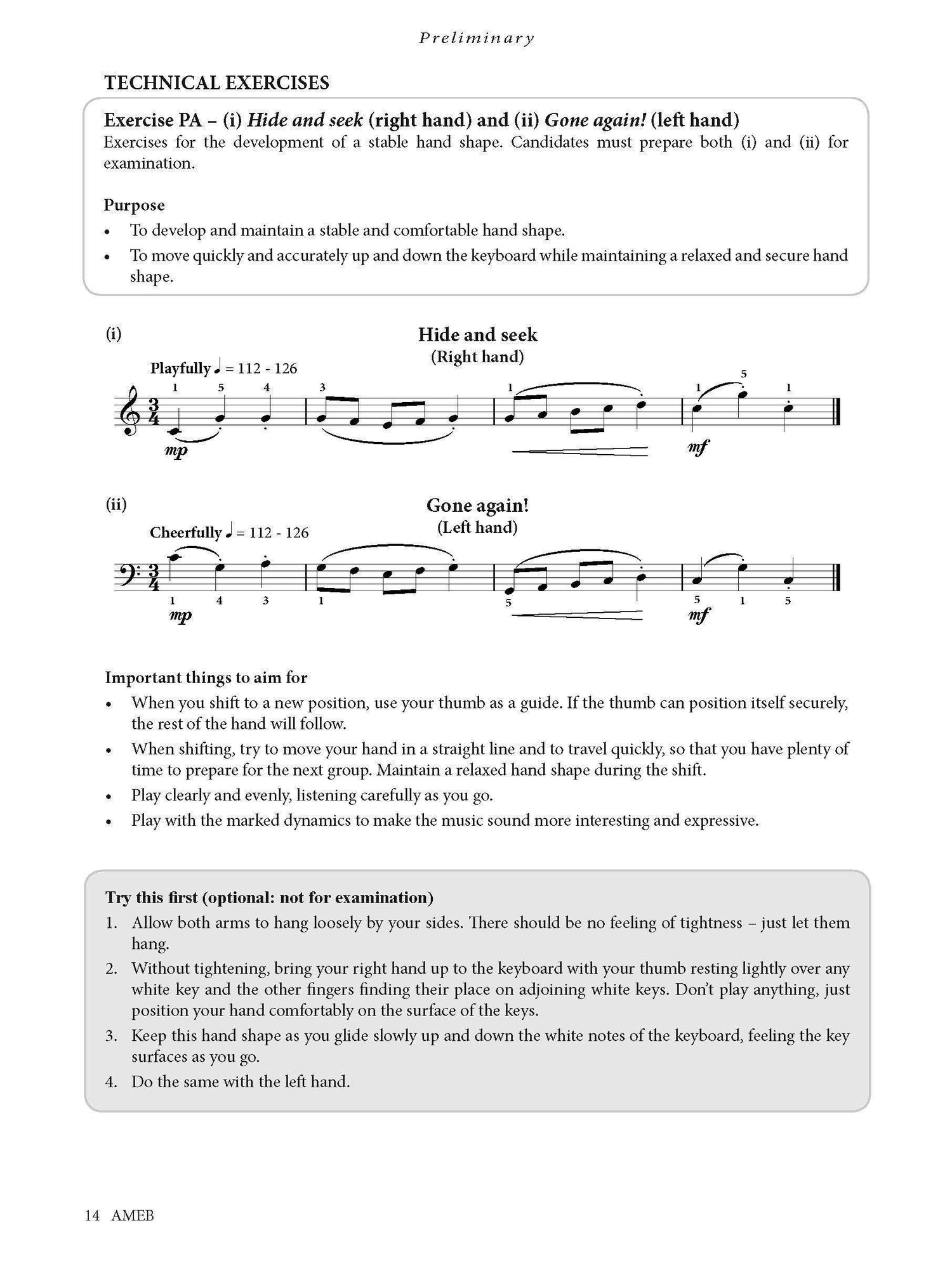 Don't start AMEB exams without purchasing a Technical Workbook! The AMEB Piano Series 18 Technical Workbook Level 1 covers all of the technical work required by AMEB for exams from the Preliminary to Fourth Grade.