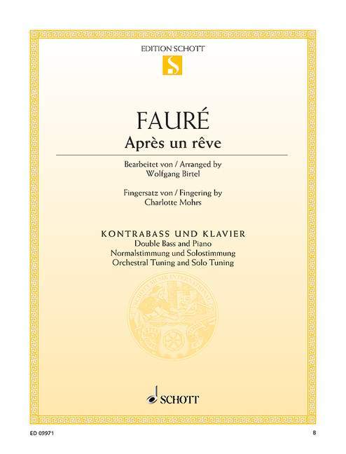 Après un rêve, written by Gabriel Fauré for solo voice and piano, is a charming performance piece for concerts and festive occasions and one of the most famous and most popular melodies by the French composer. Now, it is also available for double bass and piano.