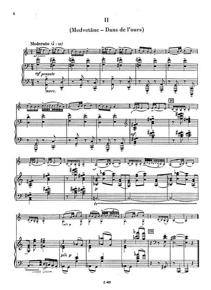 Sonatina, Sz. 55, BB. 69 is a piece for solo piano written in 1915 by Hungarian composer Béla Bartók. Initially entitled Sonatina on Romanian folk tunes, it is based on folk tunes Bartók collected in his neighbour country Romania, which, even though he proclaimed Hungarian folk music was clearly superior, was a direct source of inspiration all along his active years. Arranged for Violin and Piano.