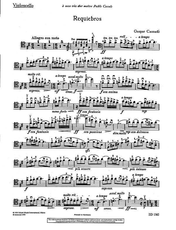 Cassado, Requiebros for Cello and Piano (Schott)