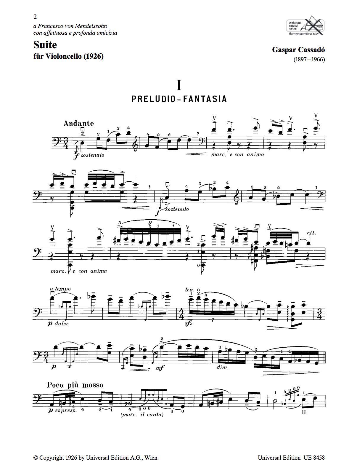This suite for solo cello was composed in 1926 and is dedicated to the German cellist Francesco von Mendelssohn. It is suitable for advanced players and professionals.