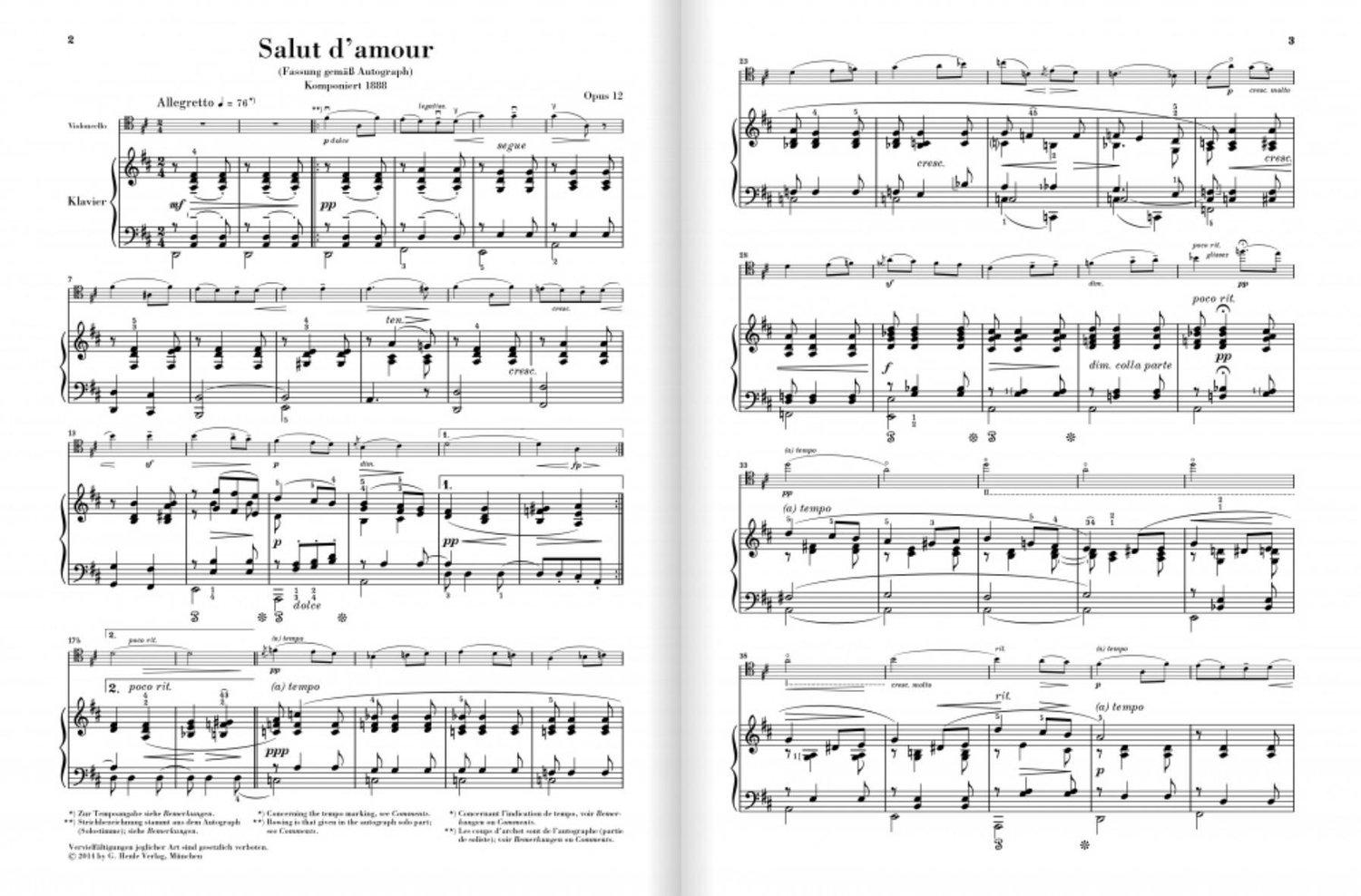 Edward Elgar’s Salut d’amour is one of those pieces by the British composer that has a particularly haunting melody. Composed in 1888 for his future wife Caroline Alice Roberts, the work became an enormous success early on. There are numerous arrangements – but the only versions for which the autograph manuscripts survive are those for Violin and Piano (HN 1188), Piano solo (HN 1190) and Violoncello and Piano. Up to now there has only been an arrangement of the cello part made by the original publisher, presumably with Elgar’s approval. We are now for the very first time publishing the version following Elgar’s autograph manuscript, which for unknown reasons had never been released. In addition we are publishing the trusted musical text from the first edition.
