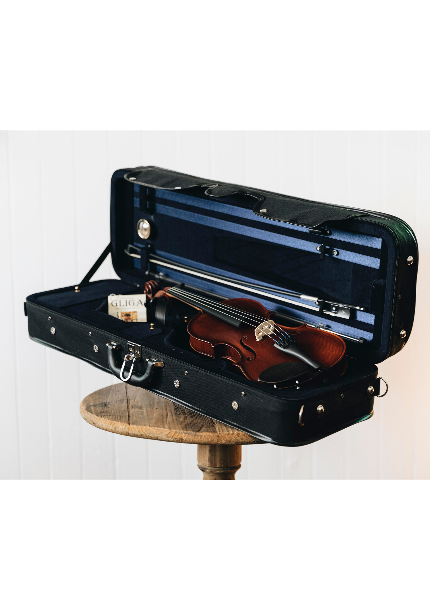 Note: This model has been specially ordered in a left-handed build and configuration. Wherever possible players who are naturally left-handed for other tasks are encouraged to learn violin right-handed as they will face no disadvantage learning this way. This left-handed instrument is primarily intended for people with disabilities that prevent them learning in the right-handed manner. Advanced student instrument. Similar specifications to ‘Gliga II’ but with better grade timbers and more handwork attention to plate thicknessing and outline contour on body and scroll producing an outstanding instrument for the advanced student. The versatile violin delivers a robust performance and a full range of tonal colours for both solo and orchestral work. Offered in standard varnish or various 'Antiqued' finishes, a popular finish which is beautifully refined to produce exceptionally attractive instruments. The ebony fittings and maple bridge are fashioned in the Gliga workshops.