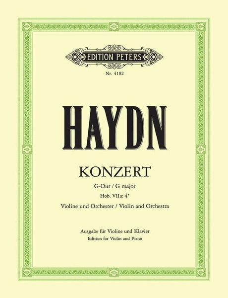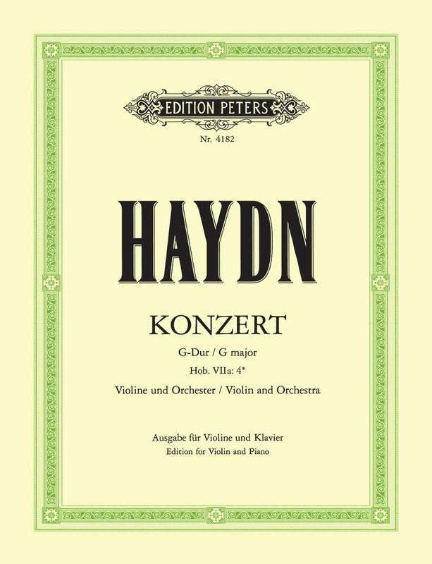 Joseph Haydn's Concerto No.2 in G Hob.VIIa/4, for Violin and Orchestra. Edition for Violin and Piano reduction with cadenzas, edited by Kuchler. Published by Edition Peters.