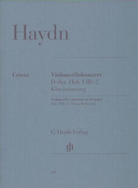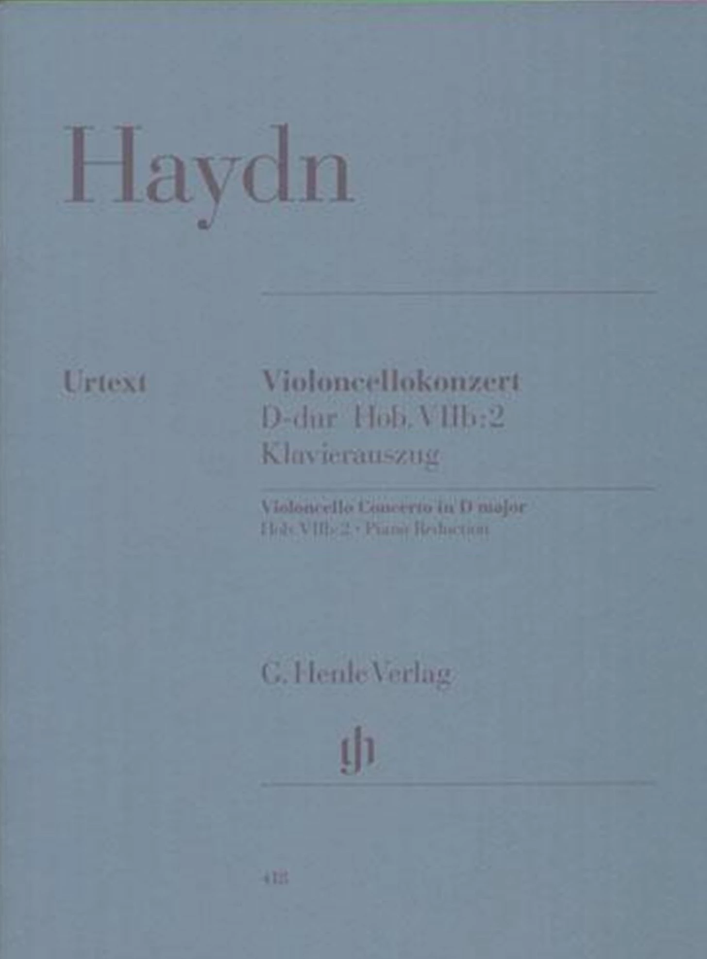 Concerto for Violoncello and Orchestra D major Hob. VIIb: 2 (with Cadenzas). By Franz Joseph Haydn (1732-1809). Edited by S. Gerlach and Sonja Gerlach. For Cello, Piano. Violoncello. Henle Music Folios. Piano Reduction-paper bound. Classical. Single piece and set of parts. Introductory text, bowings and fingerings. 46 pages. G. Henle #HN418. Published by G. Henle.