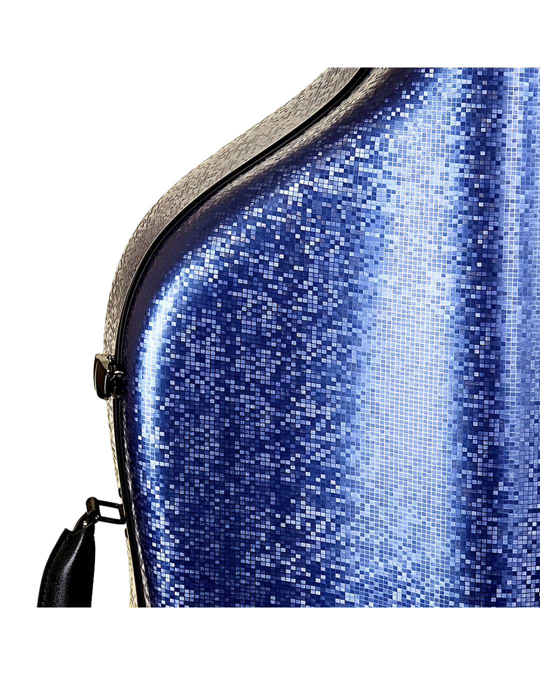 Lightweight HQ Polycarbonate Cello Case in DIGI Blue. Features a 4kg bodyweight, 2 webbed bow holders, adjustable neck restraint, padded backpack straps, reinforced endpin plate and in-built wheels.