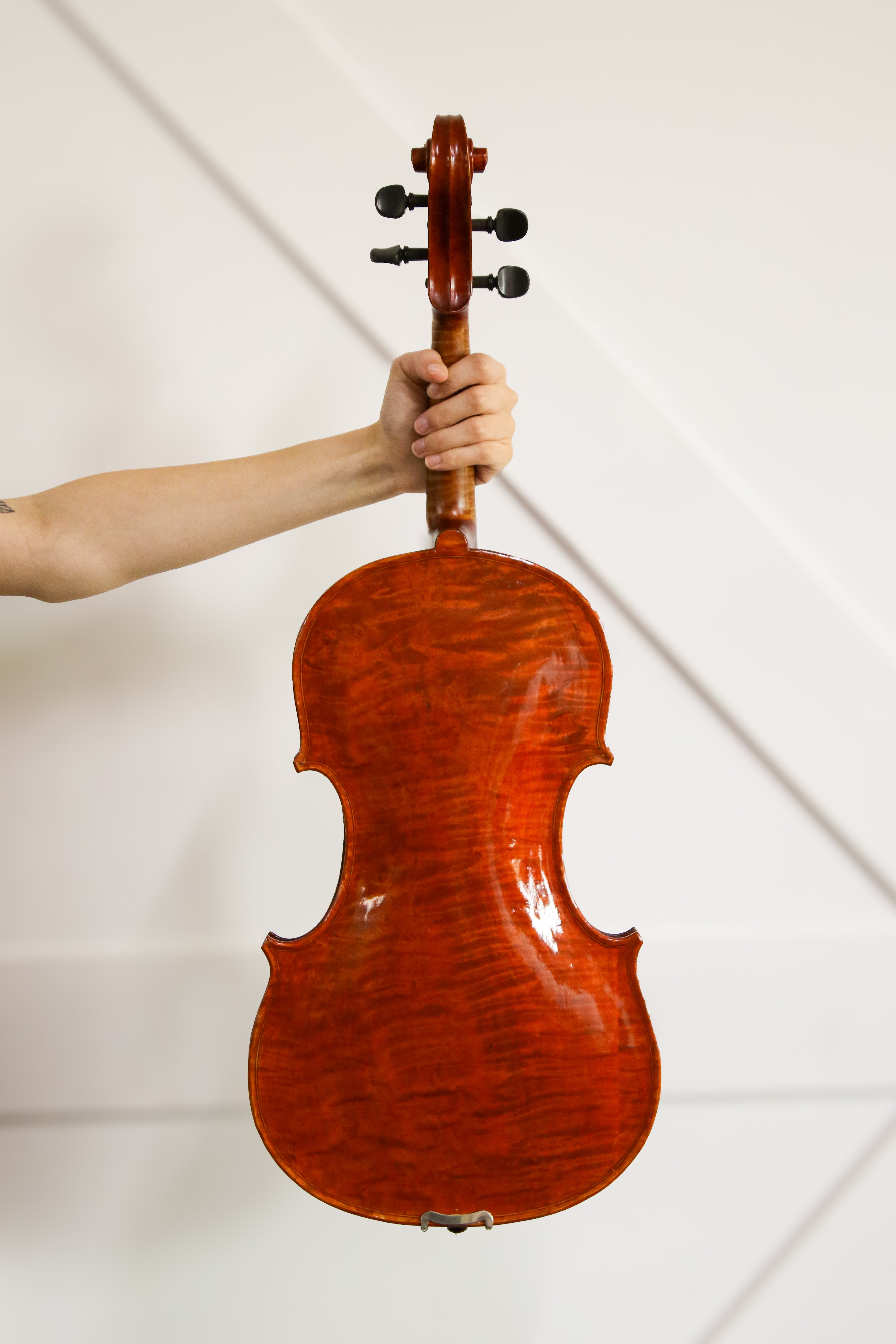 This viola has a beautiful open and balanced sound, with plenty of colour to offer and a wonderful resonance especially on the G- and C-strings. This can partly be attributed to the instrument’s larger dimensions. Despite its size, this viola still feels well-proportioned and relatively easy to navigate when playing. This viola would suit advanced and professional players who can accommodate for the slightly larger instrument size.