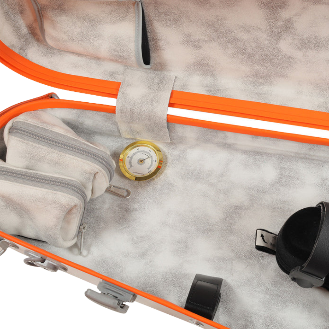 Inside, an adjustable neck block makes the case suitable for multiple viola sizes, ranging from 15” up to 16.5”. A built-in hygrometer lets you monitor the humidity, while the removable accessories compartment lets you store your bits and pieces away. The shoulder rest strap offers a spot to secure your shoulder rest and minimise contact with your instrument.
