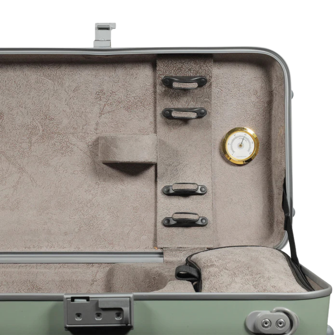 Inside, a built-in hygrometer lets you monitor the humidity, while the removable accessories compartment lets you store your bits and pieces away. The shoulder rest strap offers a spot to secure your shoulder rest and minimise contact with your instrument.