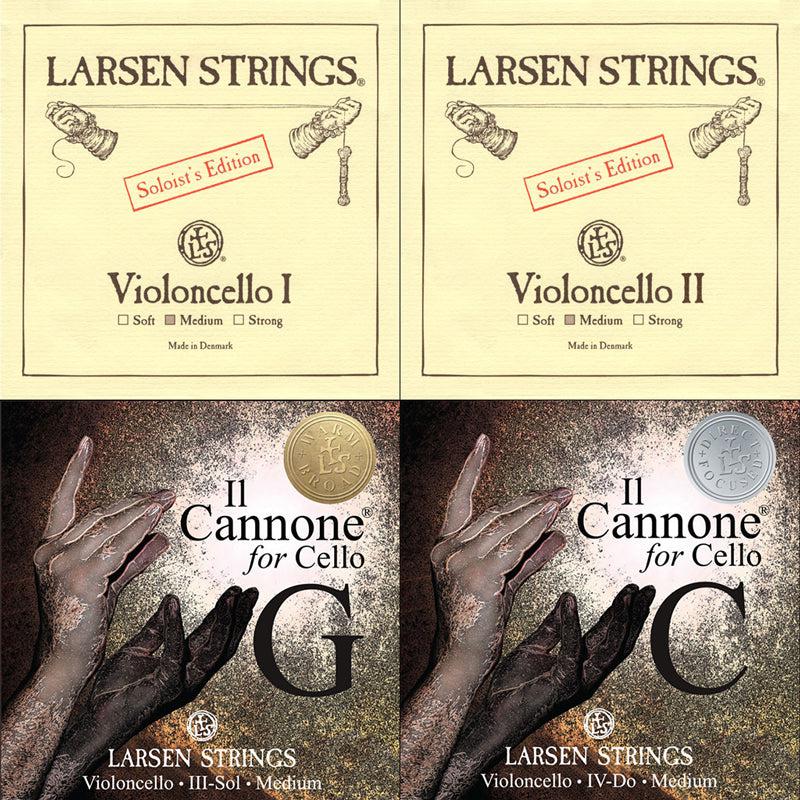 Larsen Solo/Il Cannone Cello Combination String Set 4/4 - Larsen Solo A + D (Med) & Il Cannone G (W&B) & Il Cannone C (D&F)