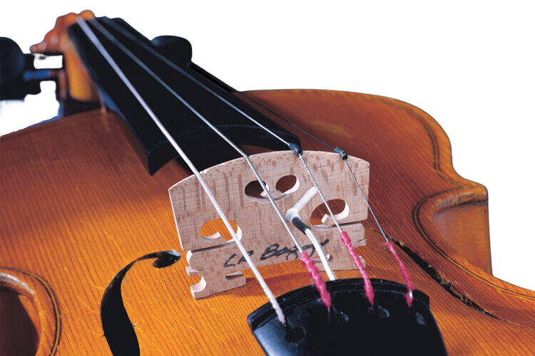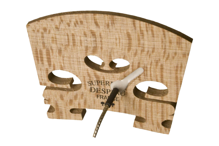 Our Violin Pickup is a miniature vibration sensor cast directly into a Superieur Despiau “Two Tree” maple bridge for maximum sensitivity and signal transfer. As an integral part of the bridge, it effortlessly captures the instrument’s inherent dynamics. Furthermore, its selective admittance pattern is aligned so that the signal is generated as the bridge moves in a left-right motion (in response to the string vibrations).