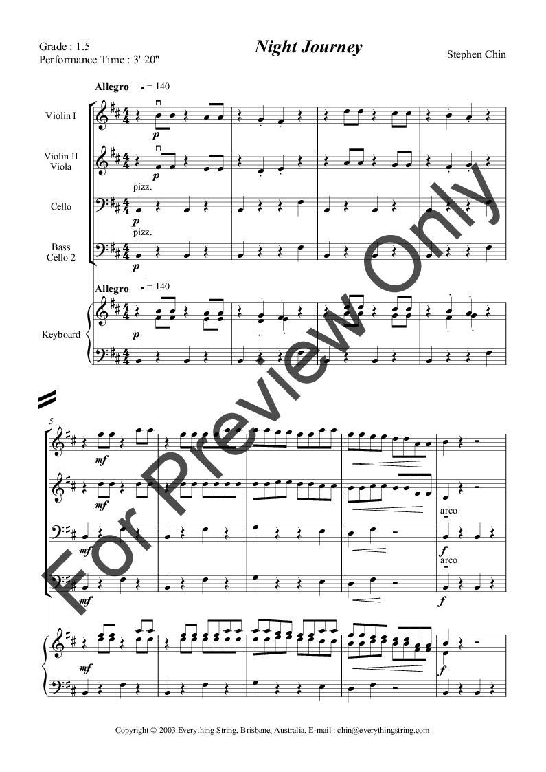 A carriage leaves in the dead of night for an unknown destination.  The tempestuous weather is unforgiving.  Someone is in pursuit of the person in the carriage.  Everything is now more urgent than ever….. Let the players' imaginations run wild with this dynamic work.  The repeated quavers certainly impart the feeling of an unsettled journey.  After a warmer middle section the pace is picked up again with an even greater sense of urgency.   All sections of the string ensemble are highlighted at various points in the piece. The journey concludes softly as the carriage disappears into the gloomy night. Grade 1.5.