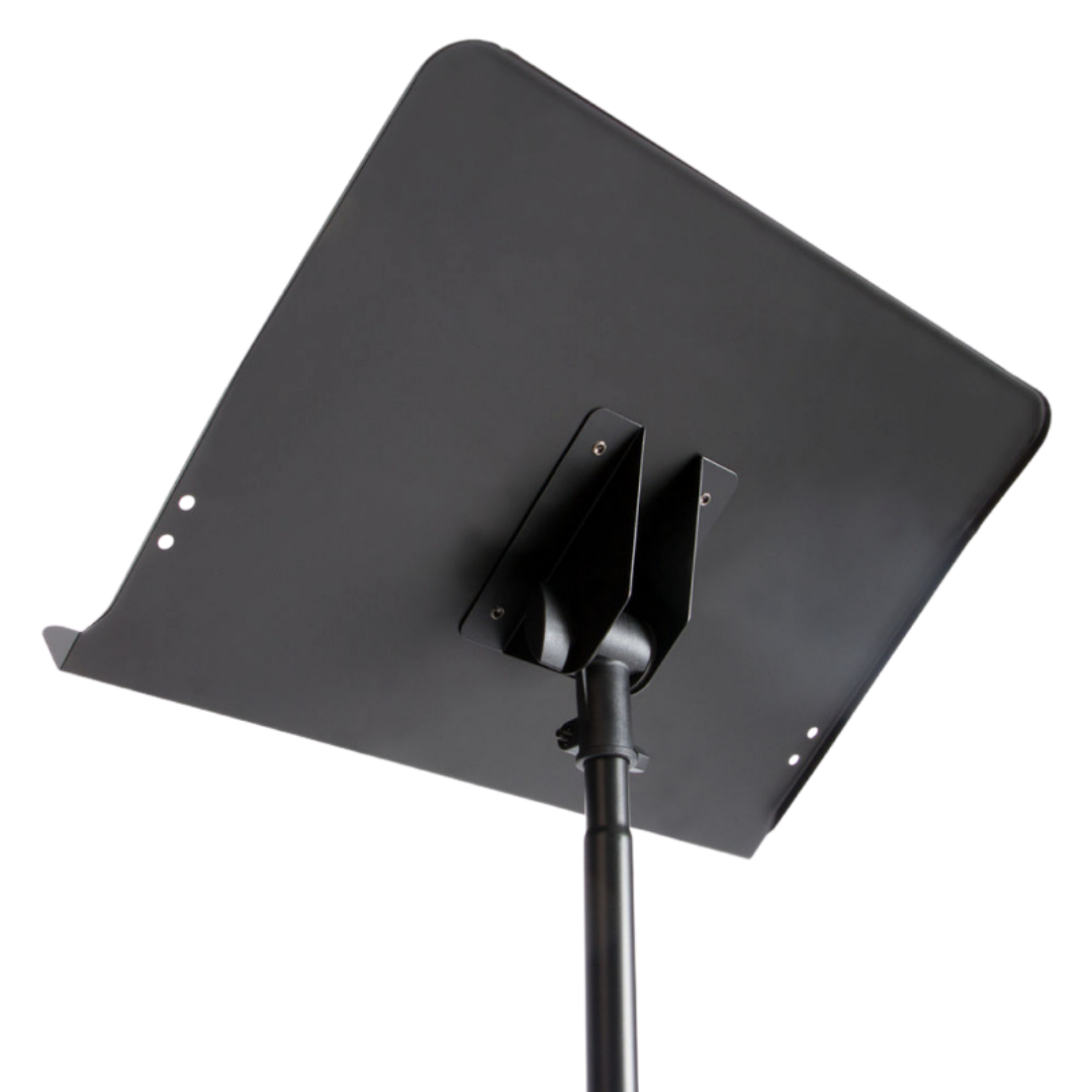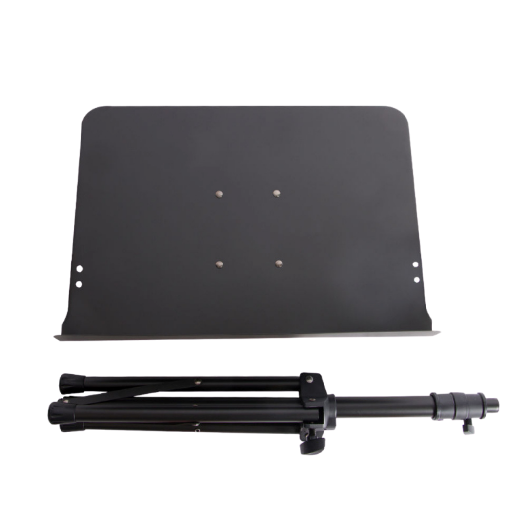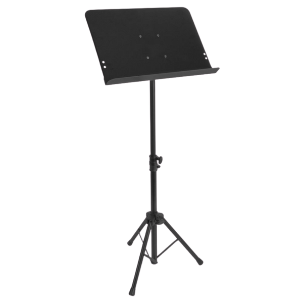 The SM7211B Music Stand with Tripod Base holds pieces ranging from single sheets to heavy music score books. Its adjustable height and tilt angle enable ergonomic viewing from a sitting or standing position. The tripod base and nonslip feet deliver exceptional balance and stability. The legs fold flat for convenient storage and travel.