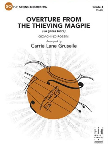 The Thieving Magpie is one of Rossini's most memorable and exciting opera overtures. After an aggressive and militaristic introduction comes the drama and intrigue surrounding a story centered on the theft of a silver spoon! Students will explore a full range of expression and bow strokes in this expertly orchestrated arrangement. (3:45) Grade 4.