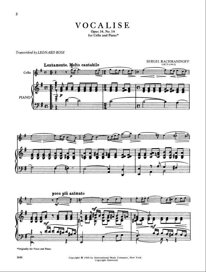 Rachmaninoff, Vocalise Op. 34 No. 14 for Cello and Piano (IMC)