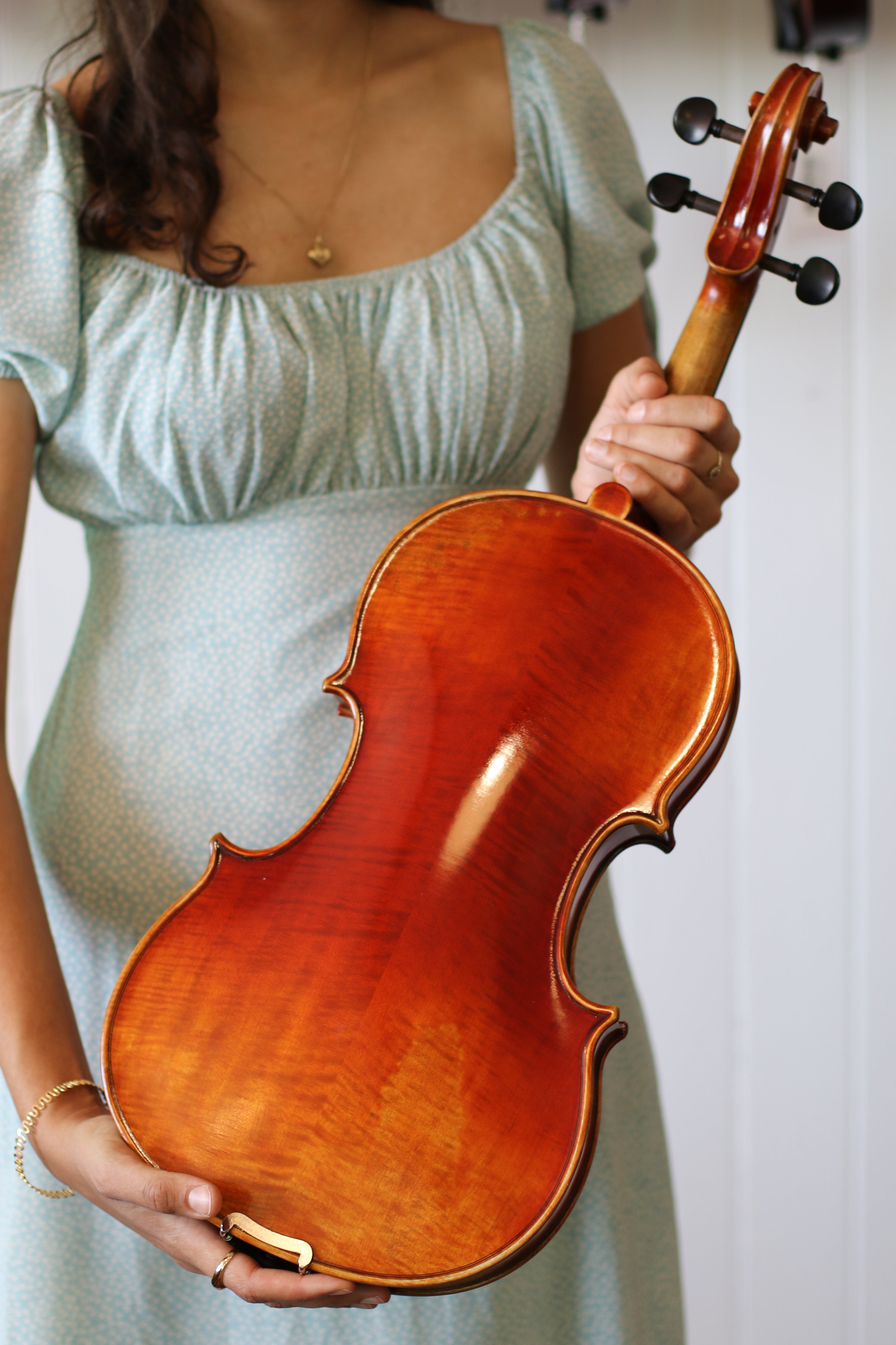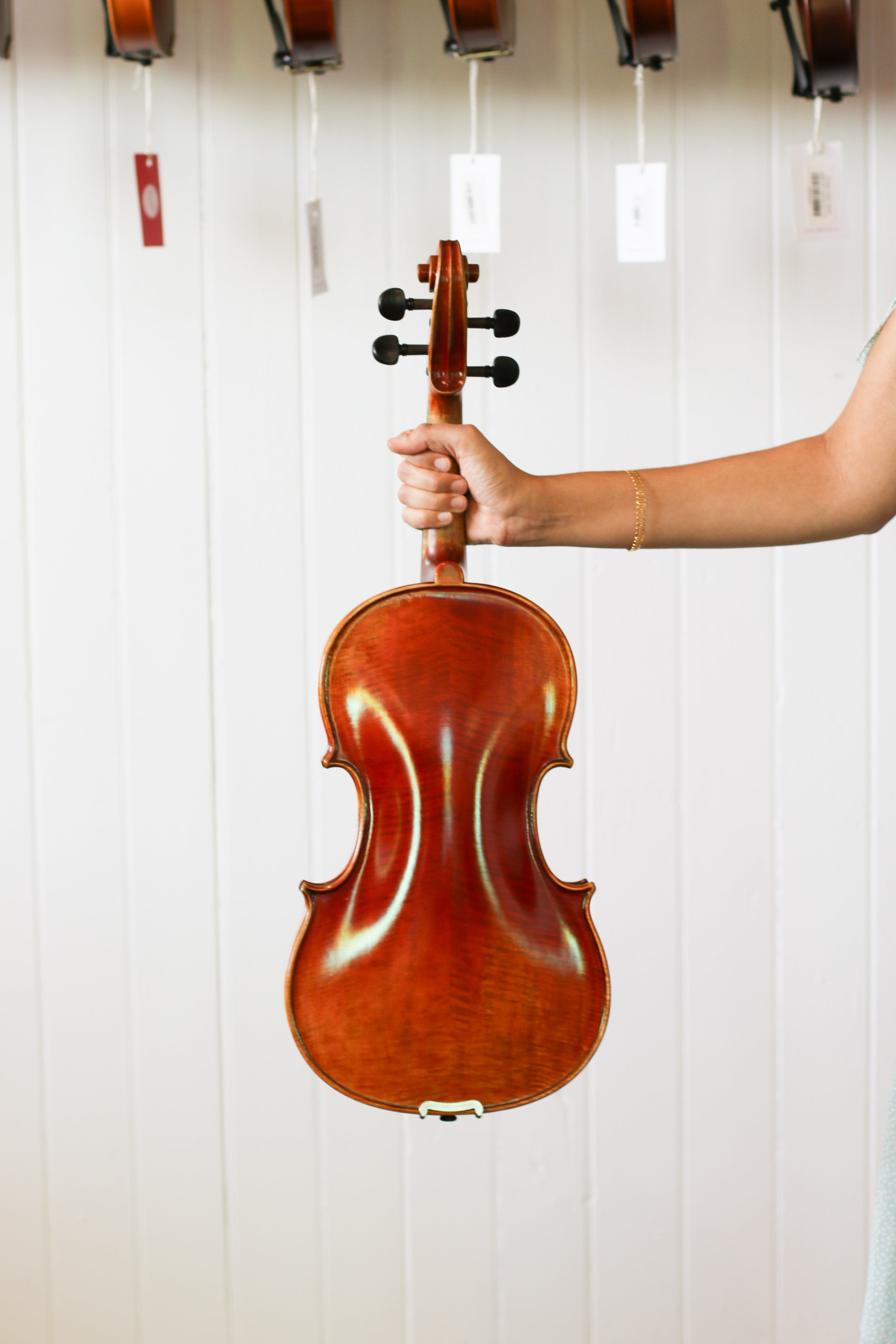 The Rococo offers a rich and complex tone, with powerful and direct projection. More nuance is available to the advancing player, with a velvety bass register and a singing treble. It provides excellent value for money, with high-quality tonewoods and improved arching aiding in improved sound projection. The Rococo range has the high-level detailed antiquing and aged tone reminiscent of vintage instruments. The Rococo is highly flamed, slightly antiqued, and has a dark reddish with golden ground varnish. The Rococo has quickly become a staff favourite at Simply for Strings.Sound Profile
