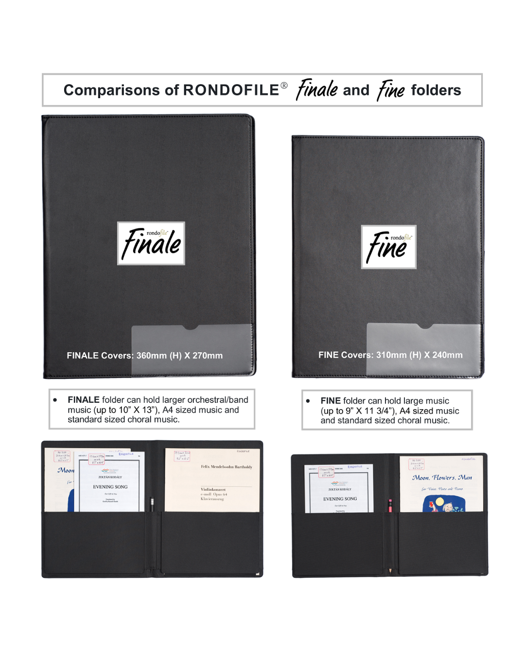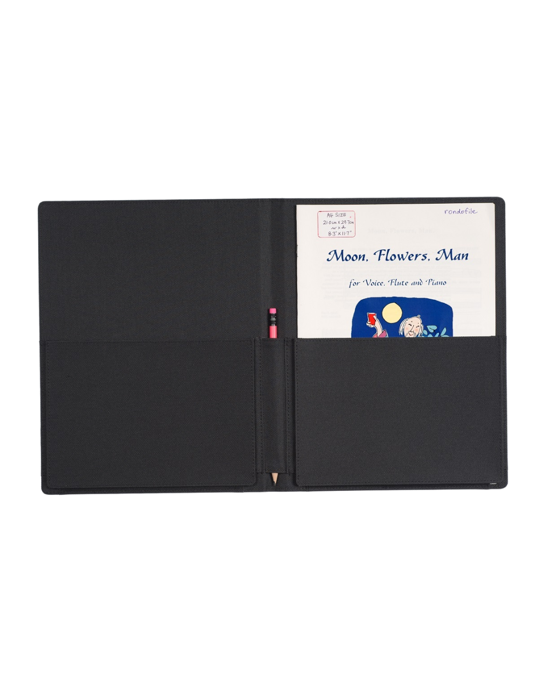 • Can hold standard sized choral music, A4 sized music (up to 9" x 11.75")