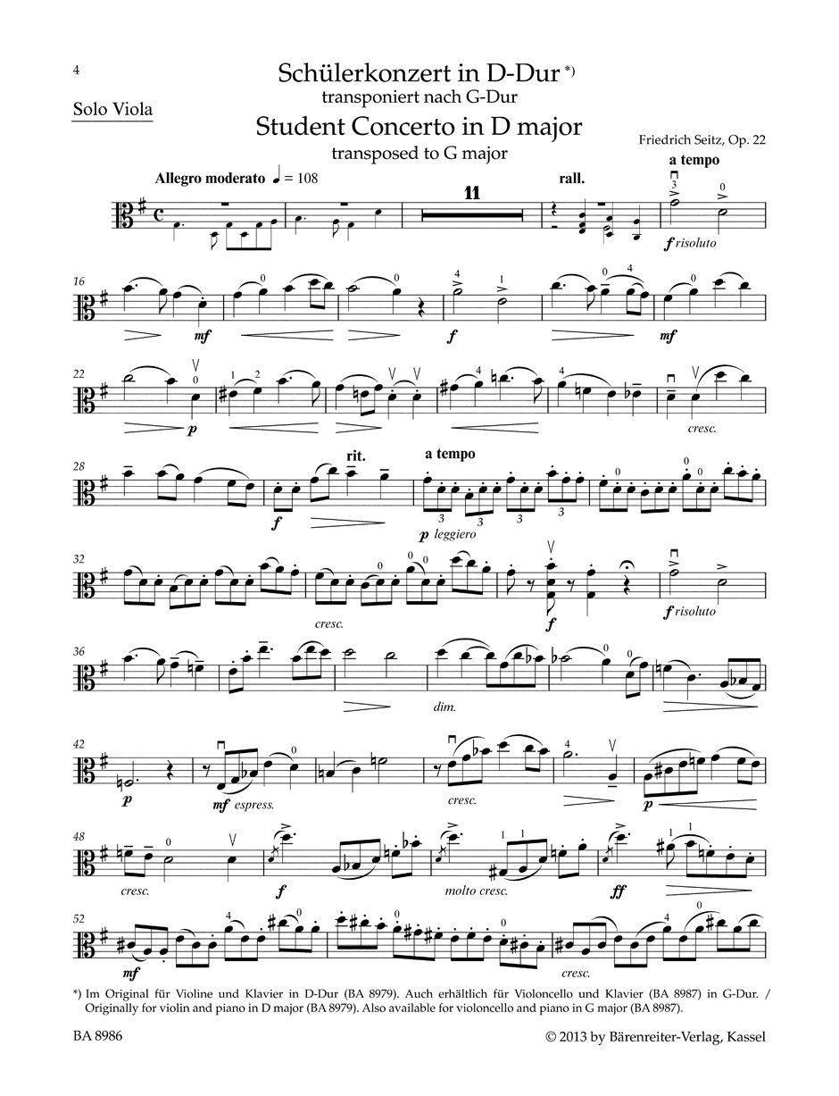 Seitz, Concerto in D Op. 22 for Viola and Piano (Barenreiter)
