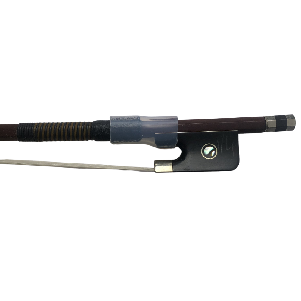 To install, use a flat surface. Unscrew the bottom of the bow, and gently place the frog and bow hair on the flat surface. Take care to not twist the hair. Slide the Rubber Bow Grip onto the stick. Hold the frog back up to the stick, and rescrew. If you have any questions or concerns about doing this yourself, please get in touch with our friendly team.