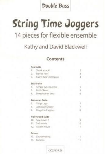 This exciting series by the authors of Fiddle Time, Viola Time, and Cello Time provides great new ensemble material for all string groups, whatever their size. The fun and characterful pieces are each scored in either two or three parts, for any combination of violin, viola, and cello; a double bass part is also provided. The flexible scoring means that pieces can be played by any number of players, from one instrument and piano to a full string orchestra, with all combinations in between. An accompanying CD features performances and backings for all the pieces. Topped off with witty illustrations, String Time is a must-have for all those looking for imaginative and enjoyable ensemble repertoire. The optional double bass part provides a bass line for the pieces in String Time Joggers. Most pieces use the finger pattern 0-1-4. The second finger is also used in two pieces.