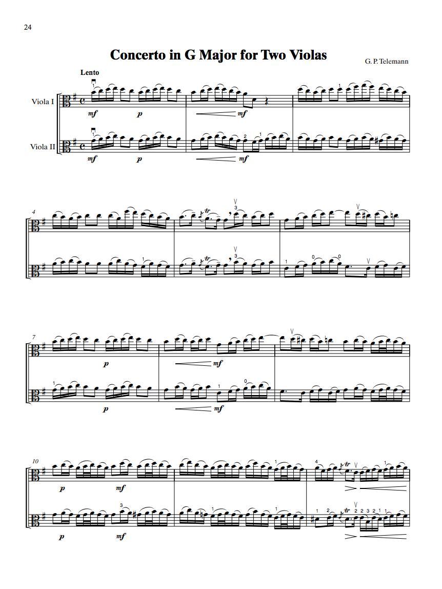 • Concerto in G Major for Two Violas (Lento, Allegro, Largo, Vivace) (Telemann)