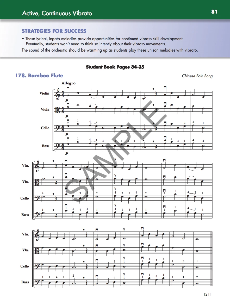 Vibrato Basics is the newest member of the String BasicsTM curriculum! Specially written for string classrooms, students of all instruments will learn step-by-step exercises ultimately preparing the left hand for a healthy vibrato motion. As vibrato starts to settle in, the exercises will segue into familiar melodies and excerpts from folk songs and orchestral literature. Vibrato Basics also features the popular Interactive Practice Studio (IPS) where students can view short videos featuring essential exercises introduced throughout the book. Vibrato Basics is an ideal companion with String BasicsTM Book 3 or any traditional level 3 method book. Shifting and position work is required for all students.