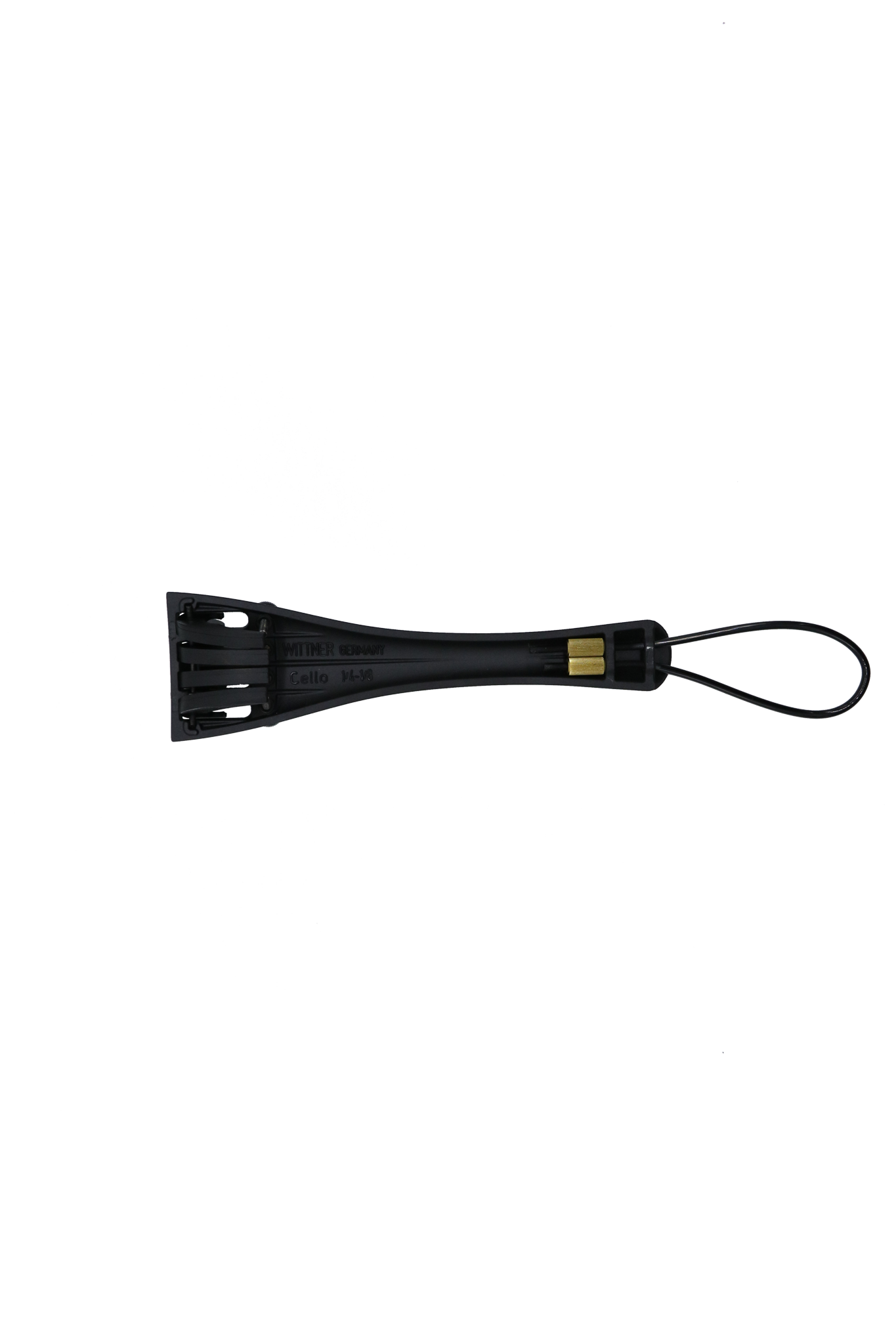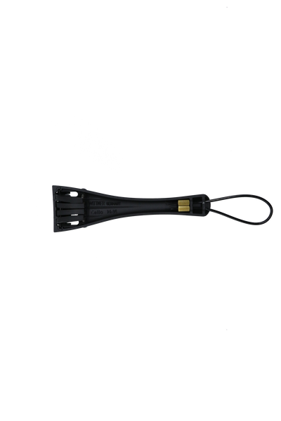 Wittner Tailpiece “Ultra” for Cellos. Made of high-tech composite material with 4 string adjusters, black screws and nylon tailgut. Ultra-strong and ultra-light. Available in 1/8 - 1/4 size, 1/2 - 3/4 size, and 4/4 size.